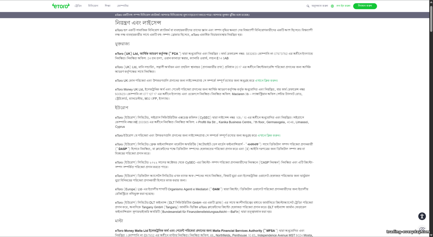 - eToro‑র নির্ভরযোগ্যতা, লাইসেন্স ও নিয়ন্ত্রণ