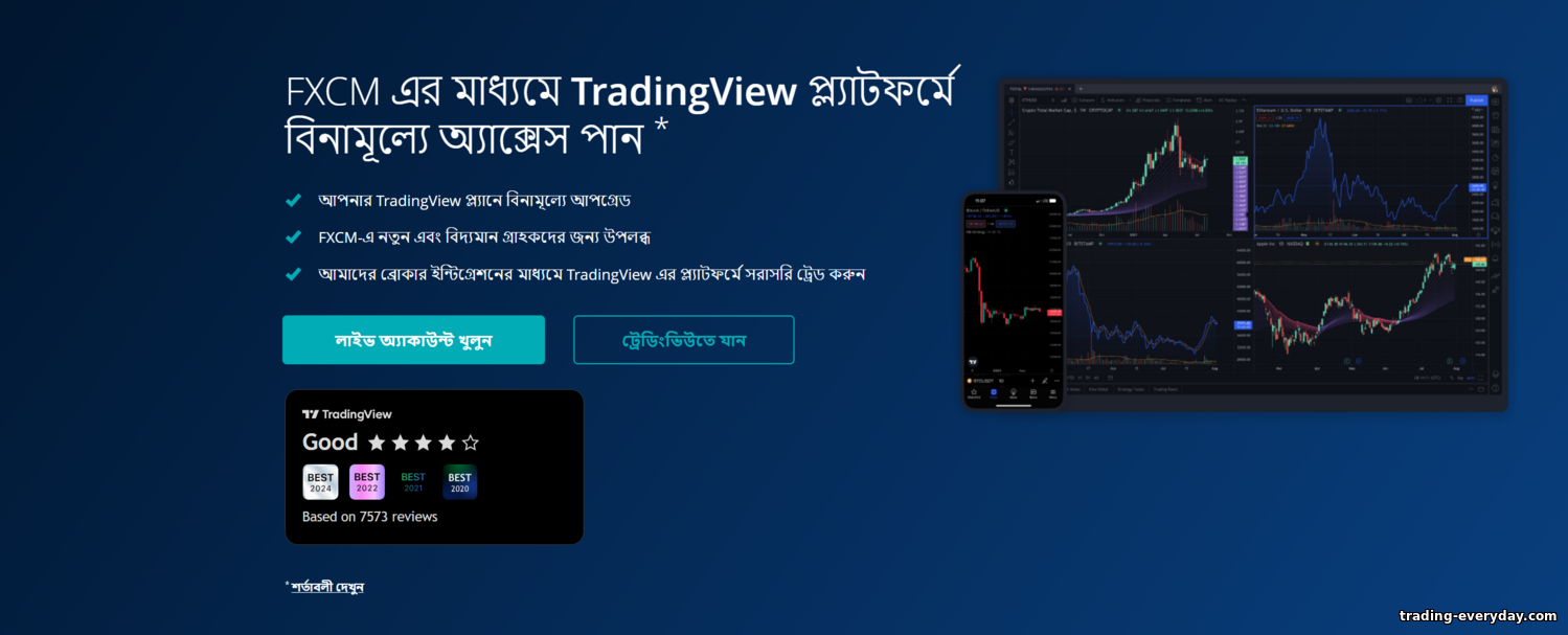 - TradingView চার্ট থেকেই FXCM ব্রোকার নির্বাচন করে সরাসরি ট্রেড করতে পারবেন।
