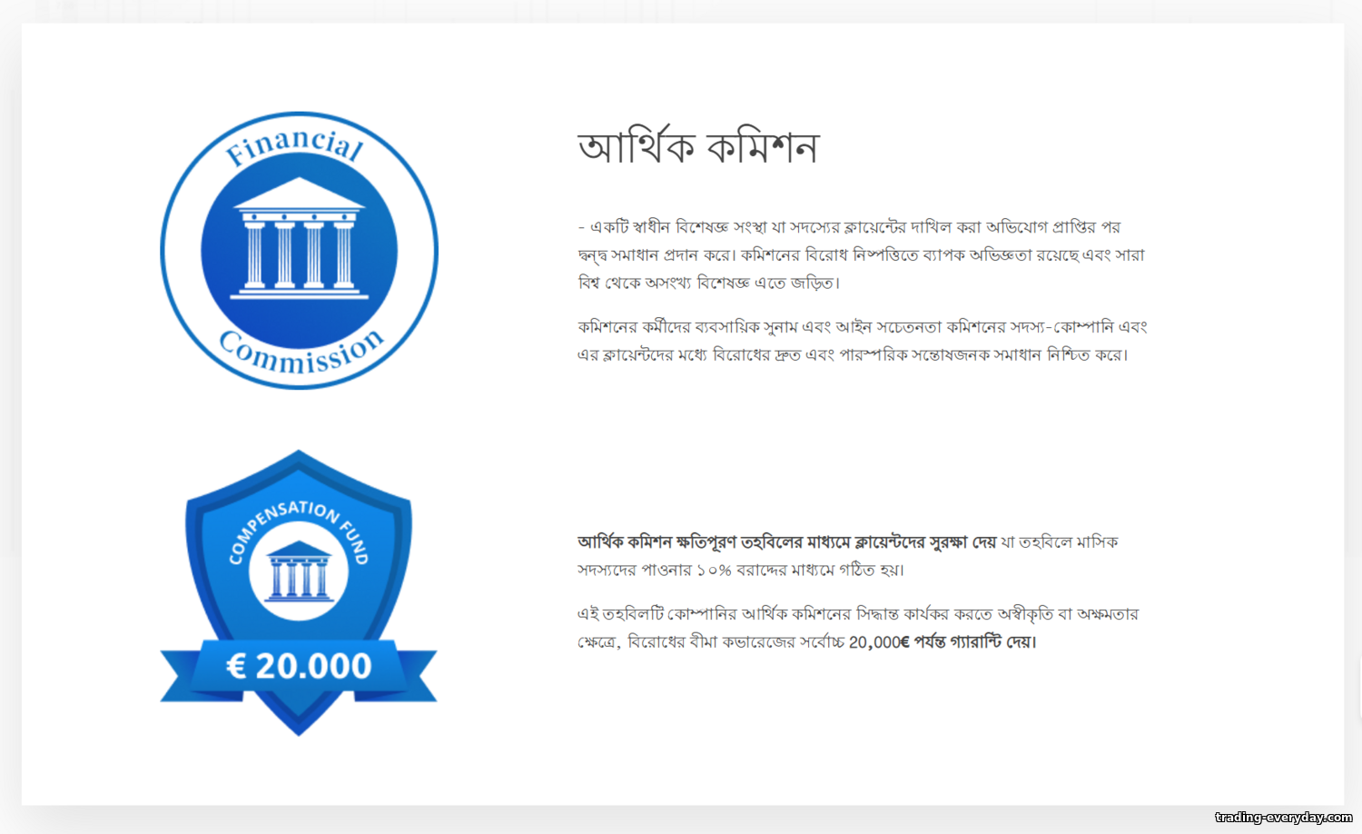 ক্লায়েন্ট আস্থা মজবুত করতে World Forex The Financial Commission‑এর সদস্য — এটি ব্রোকার‑ট্রেডার বিরোধের স্বাধীন বাহ্যিক নিষ্পত্তি সংস্থা। সদস্যপদ স্বেচ্ছাসেবী, এবং World Forex বহু বছর ধরে A‑ক্যাটেগরি পার্টিসিপ্যান্ট। ব্যবহারিক সুবিধা হলো বিতর্কিত বিষয় (যেমন, এক্সিকিউশন নিয়ে প্রশ্ন বা পেআউটে দেরি) কমিশনে এসকেলেট করা যায়। তাদের সিদ্ধান্ত সদস্যদের জন্য বাধ্যতামূলক, এবং ব্রোকার দোষী প্রমাণিত হলে ক্লায়েন্ট ক্ষতিপূরণ তহবিল থেকে অর্থ পেতে পারেন। The Financial Commission‑এর ক্ষতিপূরণ সীমা প্রতি ক্লায়েন্ট €20,000। তাই অফশোর স্ট্যাটাস হলেও World Forex ট্রেডারদের জন্য একটি স্পষ্ট সুরক্ষা ব্যবস্থা দেয়।