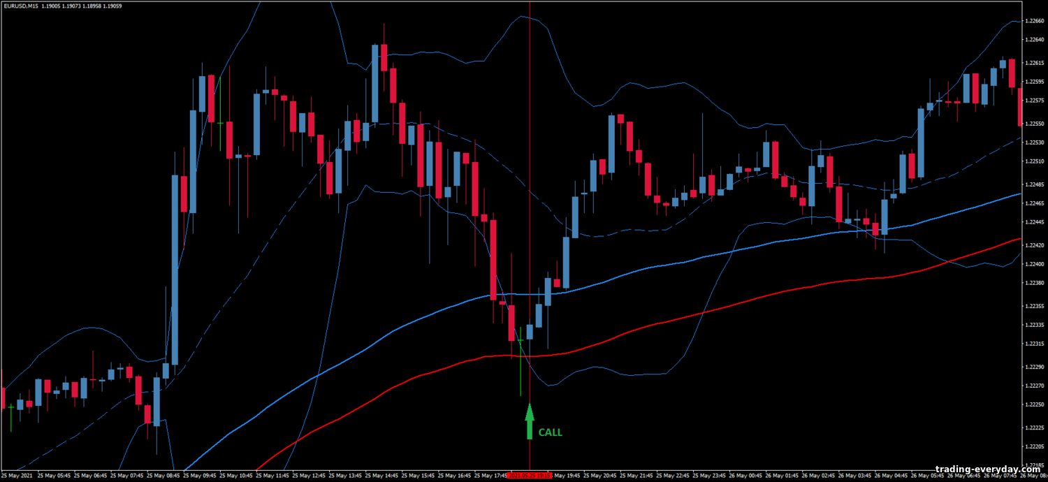 - বিয়ারিশ মোমবাতি উপরের নীল ব্যান্ডের নিচে ক্রস করলে ট্রেড এ প্রবেশ করুন